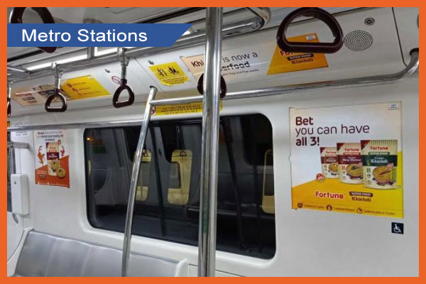 Branding on metro station walls, entry/exit gates, and inside metro coaches ensures high visibility to daily commuters.