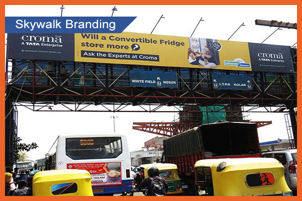 Advertisements placed on pedestrian skywalks, ensuring exposure to both pedestrians and passing vehicles.