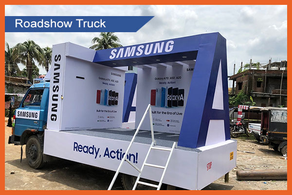 A larger setup ideal for grand-scale marketing events, equipped with a stage, LED screens, and audience engagement zones.